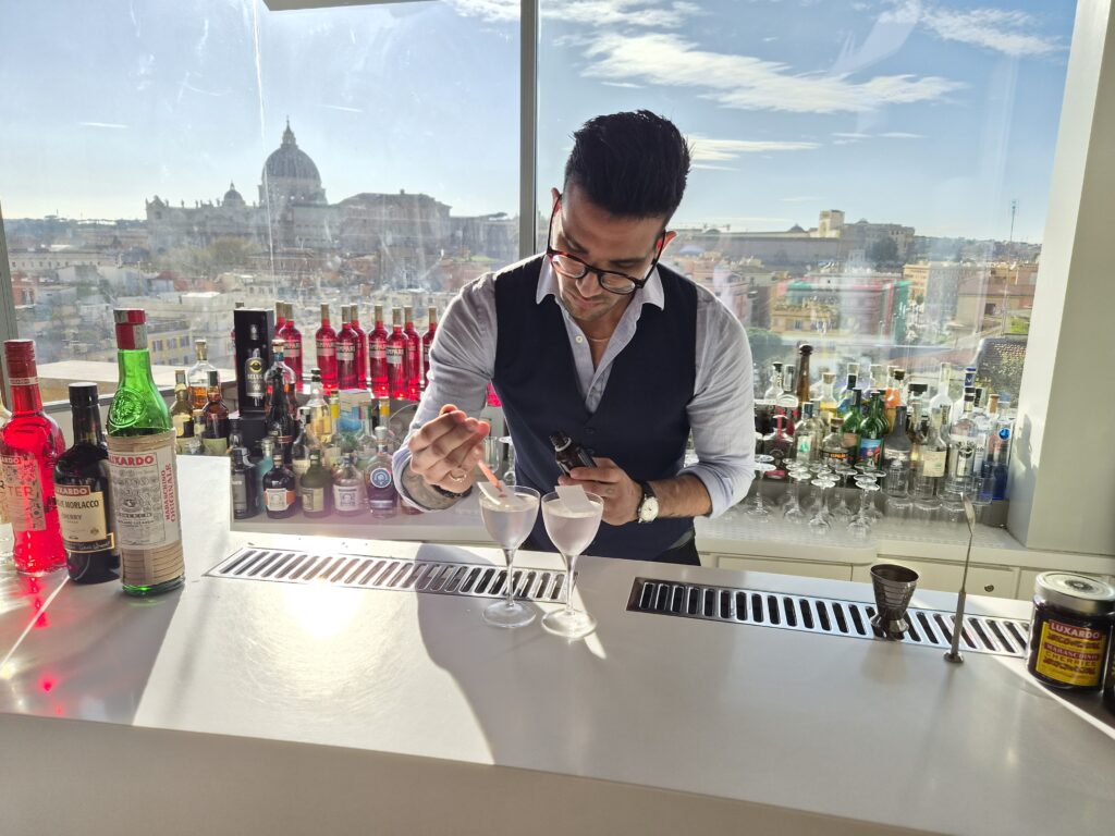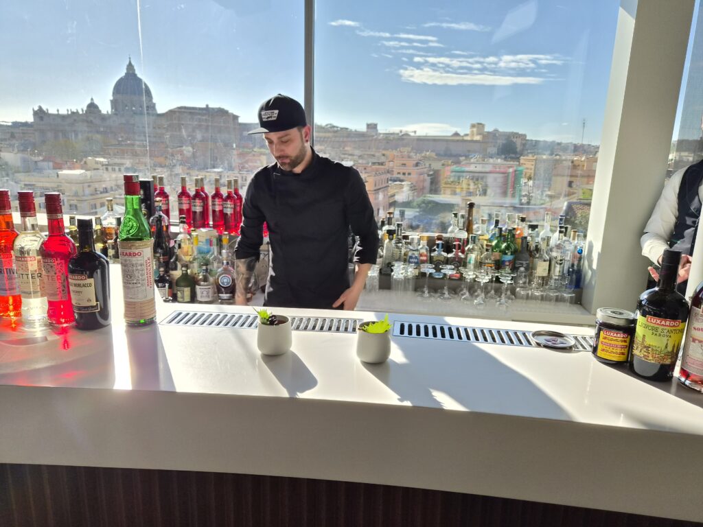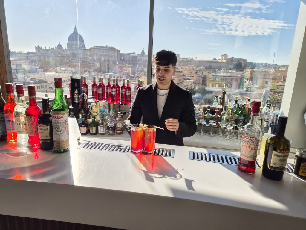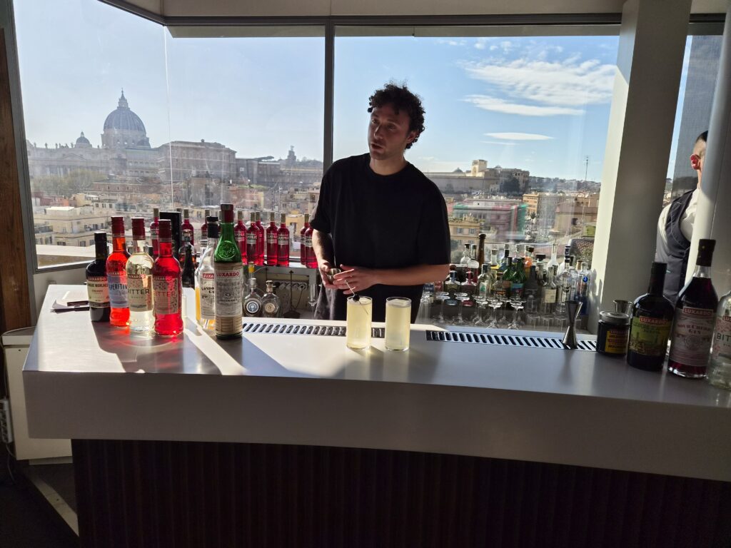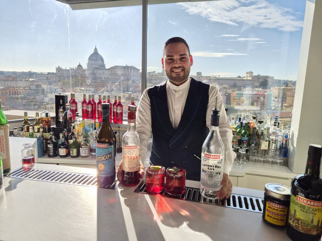 Circondati dai tetti della Capitale dieci selezionati bartender si sono confrontati tra loro per staccare un posto per la finalissima che si terrà nel mese di settembre presso il Museo Luxardo di Torreglia, Padova. Il vincitore finale accompagnerà il team Luxardo all’annuale edizione del Bar Convent di Berlino nel mese di ottobre. Prima della competition Fabio Bacchi e il Presidente di Luxardo 1821, Dottor Piero Luxardo, hanno intrattenuto il pubblico con la presentazione della case history di Luxardo 1821 e un tasting guidato di alcune referenze del portfolio Luxardo 1821.