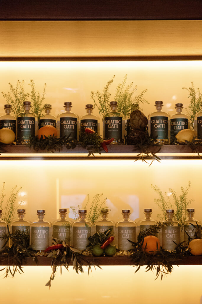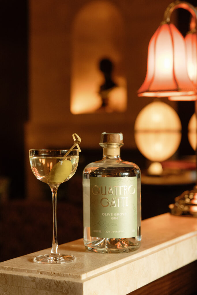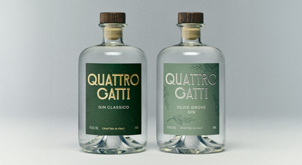 Quattro Gatti Olive Grove, ginepro, foglie di ulivo, olive della loro tenuta in Umbria, olio di oliva di loro produzione, carciofo, scorze di limone e timo, è uno spirito con una struttura setosa che favorisce il consumo in purezza. Tra le novità del 2026 una special release i cui dettagli verranno rivelati in futuro e la presenza come Gin ufficiale della 61esima Esposizione Internazionale d’Arte presso Biennale Arte 2026 a Venezia.